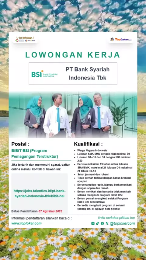 BiBiT BSI 2025#lowongankerja#banksyariahindonesia#infomagang#mangang#lokerbank#lokersmasmk#bumn