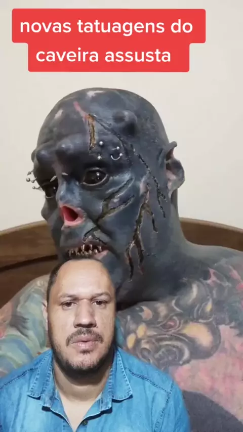 caveira o homem mais tatuado do Brasil. #Notícia #kwai #bizarro #tatuagem
