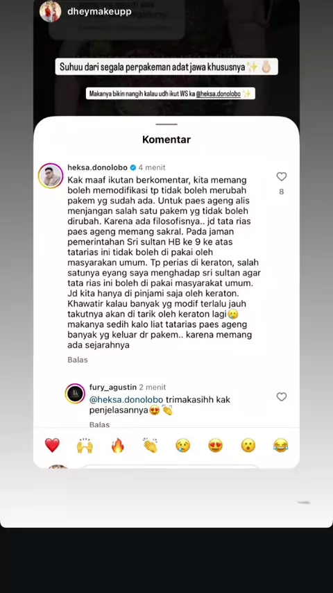Replying to @indy rias adat statusnya cuman pinjeman shay, thanks ke para sesepuh yang menghadap ke raja minta ijin agar rakyat jelata kayak kita bisa pakai rias adat 🥲. Source instastory @Diheksa Y 🫶🏻