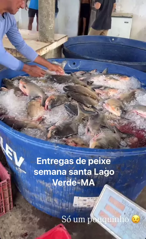 Peixes sendo doados para a população lago verde se