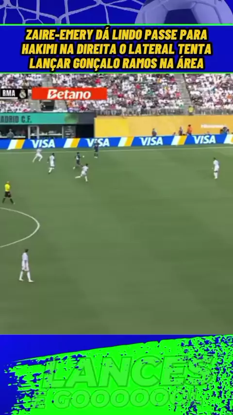 Zaire-Emery dá lindo passe para Hakimi na direita. O lateral tenta lançar Gonçalo Ramos na área, #psg #realmadrid #psgxrealmadrid #SuperMundial #esporte