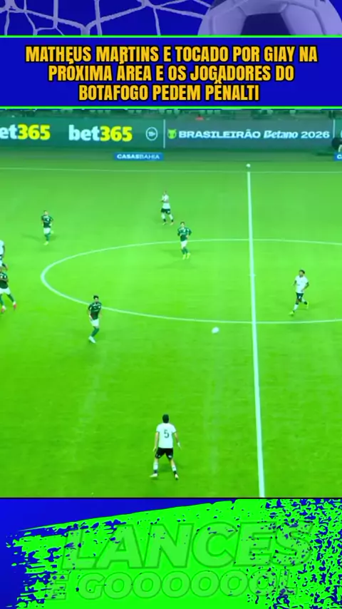 Matheus Martins e tocado por GIAY na próxima área e os jogadores do Botafogo pedem pênalti #PalmeirasxBotafogo #palmeiras #botafogo #esporte #brasileirão2026