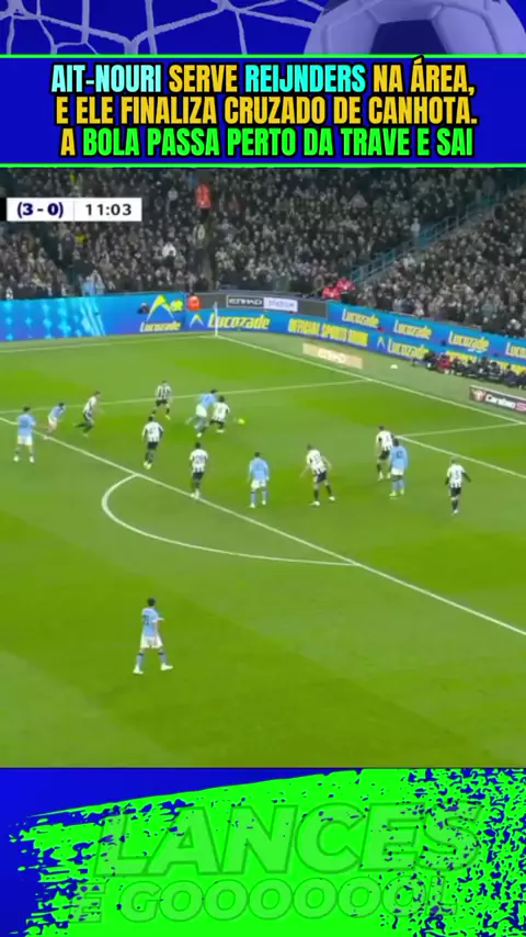 Ait-Nouri serve Reijnders na área, e ele finaliza cruzado de canhota. A bola passa perto da trave e sai#ManchesterCityxNewclaste #City #Neeclaste #esporte #copadaligainglesa