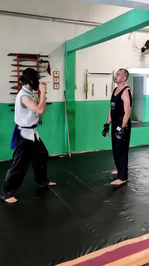 primeira aplicação do estilo louva-a-deus com contra-ataque rápido e sem chance para o oponente. #kungfu #defesapessoal #luta💪