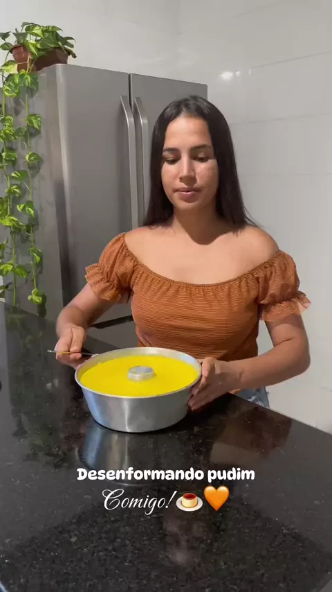 Desenformando pudim de leite condensado feito sem banho maria!🍮🫣🧡#Pudim #satisfatório #leitecondensado #vira