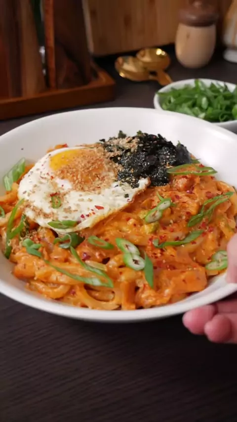Esta receita cremosa de kimchi udon é o epítome do conforto aconchegante ^ - ^ # udon # udonnoodles # creamykimchiudon # noodles # receitas