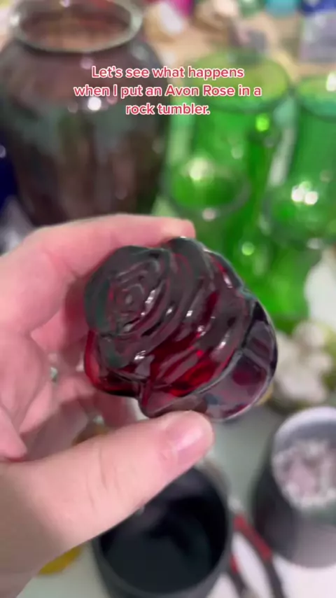 Avon Rose in a rock tumbler Part 1#rocktumbler#glasstumbling#fauxseaglass#fakeseaglass#seaglass#avonrose#ReTokforNature#MessFreeHero