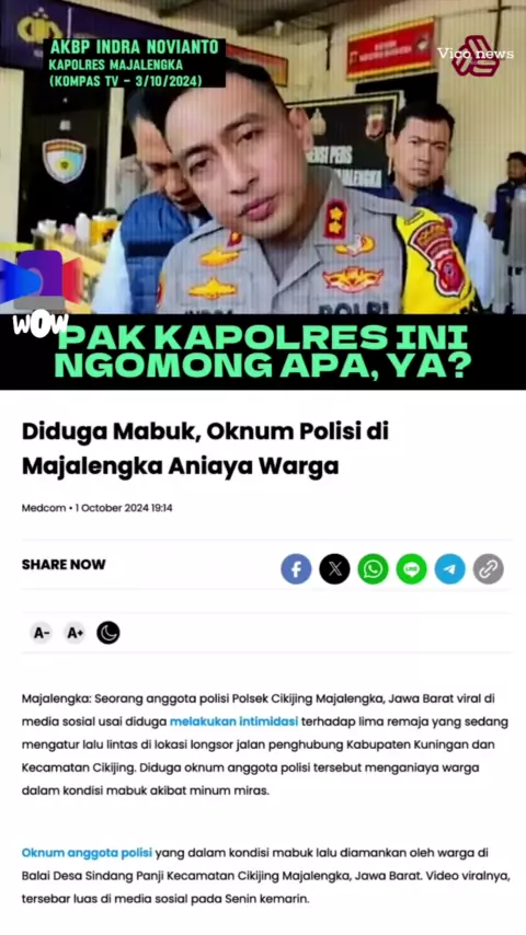 Kapolres Majalengka ini jadi sorotan netizen ketika menjawab pertanyaan wartawan soal perkembangan kasus seorang polisi Polsek Cikijing Majalengka yang dikepung ratusan warga karena mabuk membawa sajam dan menganiaya beberapa warga. #kapolri #PercumaLaporPolisi #kpk