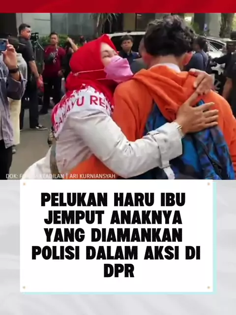 PELUKAN HARU IBU JEMPUT ANAKNYA YANG DIAMANKAN POLISI DALAM AKSI DI DPR