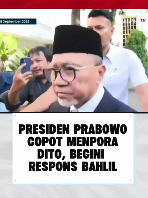 PRESIDEN PRABOWO COPOT MENPORA DITO, BEGINI RESPONS BAHLIL