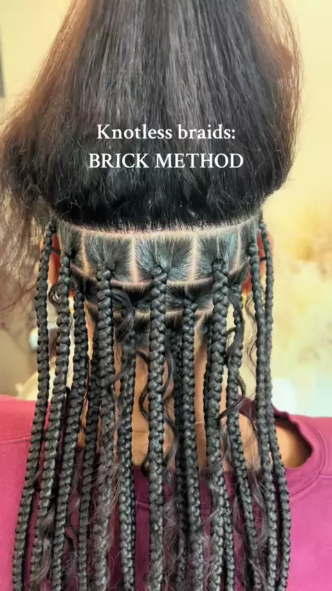 Knotless Brick Method ↓ ↓ Este método permite que suas tranças fiquem planas uma ao lado da outra em vez de uma em cima da outra. Pois evita que suas tranças se sobreponham e garante um visual organizado e cheio na hora que terminar! Imagine tijolos e como eles são empilhados um em cima do outro!! # ク # braidstutorial # bostonbraider # bostonbraids # braiderson # neatbraids # knotlessbraids # mediumknotlessbraids # knotlessbrickparts # howtoknotless