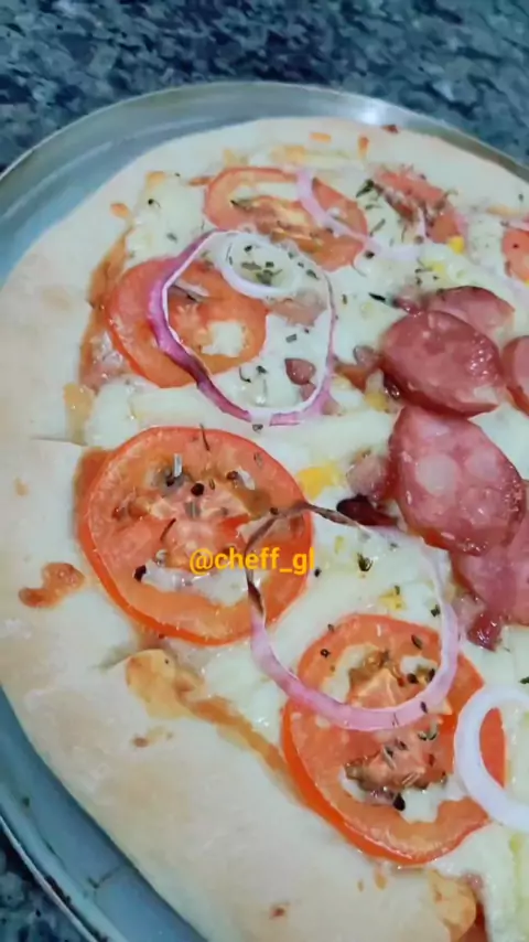 olha que delícia 😍🤤 . . segue aí para mais vídeos assim 🤝🏽🙏🏽❤️ . . #pizza #fermentacaonatural #kwai #Explorar