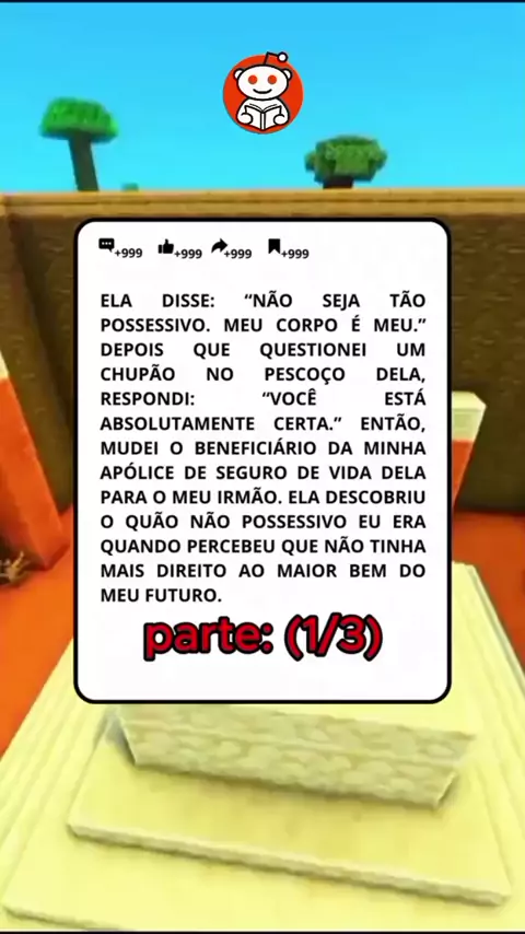 PARTE 1/3 Ela disse: "Não seja tão possessiva. Meu corpo é meu." Depois de questionar um chupão em seu pescoço, respondi: "Você tem toda a razão." Então, mudei o beneficiário do meu seguro de vida dela para meu irmão. Ela descobriu o quão possessiva eu ​​não era quando percebeu que não tinha mais direito ao maior bem que eu controlava: meu futuro. #redditbrasil #historia #Viraliza