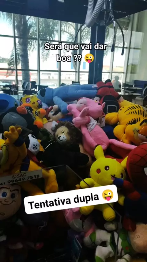 Duas tentativas ao mesmo tempo... Será que deu boa? #Brmachine #pelucia #PinkPanther #dino #dinossauro Tentativa dupla 😜