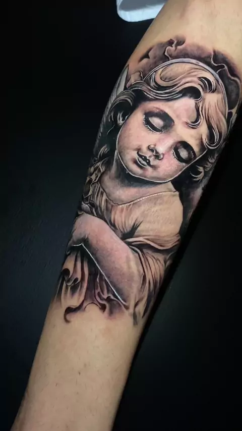 Trabalho usando preto puro #tattoo #anjotattoo