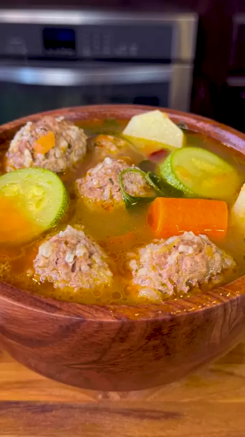 Caldo de Albóndigas Este é o melhor alimento de conforto, saudável e satisfatório em cada mordida. Caldo de Albóndigas (Sopa de Almôndegas) é um dos muitos ensopados mexicanos amados, como Birria de Res, Frijoles Charros, Pozole e Menudo. Perfeito para almoço ou jantar! Caldo DE ALBÓNDIGAS Ingredientes: Para as Albóndigas: ► 2 lbs de carne moída ► Sal e pimenta a gosto ► Algumas folhas de hortelã picadas ► 1 chávena de arroz cru ► 2 ovos à temperatura ambiente Para o caldo: ► 1 / 2 cebola branc...