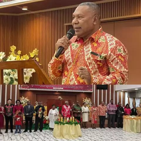 Aryoko Rumaropen Hadiri Ibadah Natal Bersama Jemaat KINGMI Eklesia Angkasa Wakil Gubernur Papua, Aryoko A.F. Rumaropen, S.P., M.Eng, bersama keluarga menghadiri dan mengikuti ibadah Natal bersama Jemaat KINGMI Eklesia Angkasa, Kota Jayapura, pada momentum perayaan Natal 2025. Kehadiran Wakil Gubernur Papua tersebut disambut hangat oleh jemaat dan pimpinan gereja. Ibadah Natal berlangsung khidmat dengan suasana penuh sukacita, kebersamaan, dan semangat kasih Kristus yang menyatukan seluruh jema...