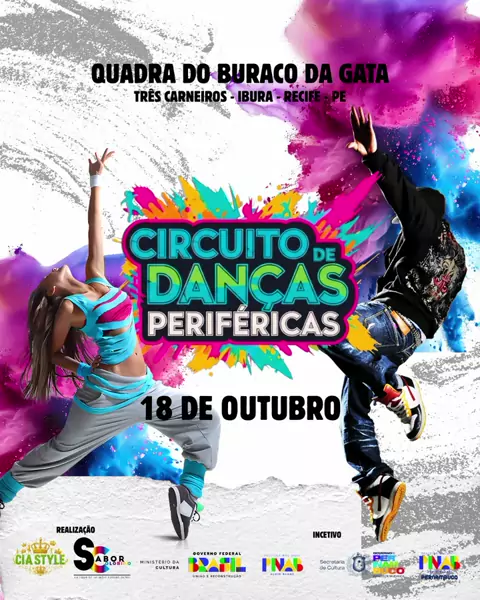 O CIRCUITO DE DANÇAS PERIFERICAS é um projeto que viabiliza e potencializa a expressões que vem da periferia,reafirmando o protagonismo da arte urbana na região metropolitana do Recife,mobilizando e potencializando a dança como a verdadeira mola propulsora dos jovens envolvidos com essa cultura nas comunidades.A dança está no cotidiano das comunidades, e um dos movimentos de periferia mais aquecidos na cultura entre os bairros é a movimento chamado Brega funk.O projeto visa realizar um circuito