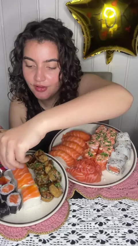 Comemoração ao 70k 🎉 Obrigada a todos que me acompanham e gostam do meu ASMR!!! Gostaram desse novo formato? Que sua semana seja repleta de sushi ♥️ #ASMR #ASMRSushi #ASMRFood #vaiprofycaramba #mukbang