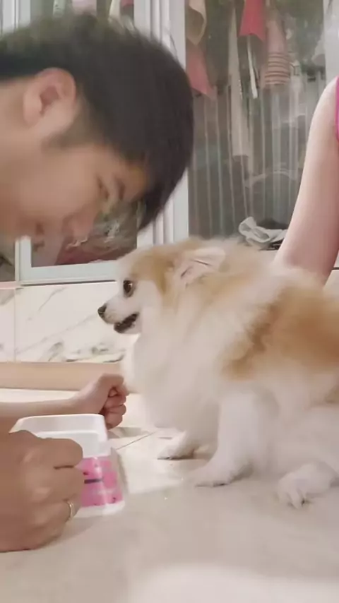Ada yg kyk gini ga ya?? Dikasi makan ga mao. Harus drama rebutan dl br ada nafsu makan 🙂‍↔️#minipom#drama#makanbareng#dogfood#petss