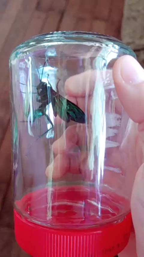 Apparently this is a mud dauber that isn't interested in world domination. I am dubious. Very pretty though.#junglelife#wasps#muddauber#
