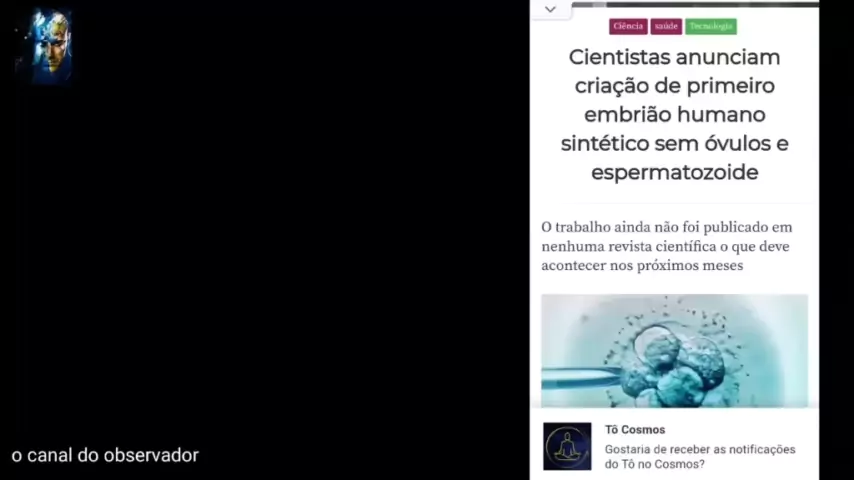 HOJE - COMO NOS TEMPOS DE NOÉ - EMBRIÃO SINTÉTICO ANUNCIADO - UM NOVO SER TOTALMENTE ARTIFICIAL. #fy #God #KwaiBrasil #Fimdostempos Creditos ao Canal do Observador no YT