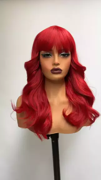 PERUCA ONDULADA COM FRANJA ORGÂNICA BABY LISS FIBRA PREMIUM VERMELHA 🦁 LIONSWIG | Sua loja de perucas e acessórios 🦁 ◾ Site oficial: www.lionswig.com ◾ Nossas redes sociais: @lionswig ◾ WhatsApp: (27) 99895-6446 ◾ Atendemos varejo e atacado