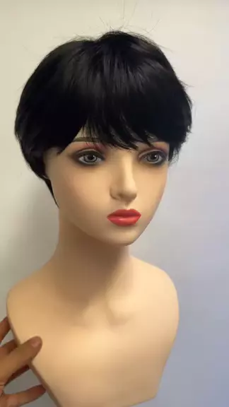 Peruca front lace humana curta repicada corte chanel preta natural