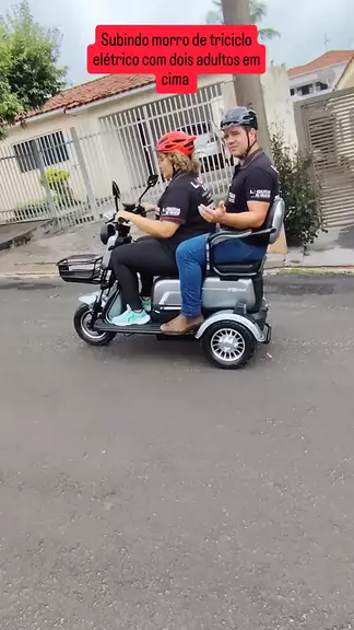 Subindo morro de triciclo elétrico com dois adultos em cima. #tricicloeletrico #autopropelido
