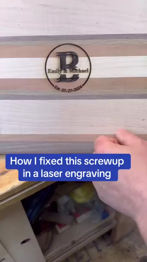 I was going to trash this piece, but the words “how are you going to fix it?” stopped me and made me think. This was actually an easy fix once i realized it could be fixed!#woodworkingproject#woodworking#maker#laserengraving#workshop#cuttingboard#woodworker