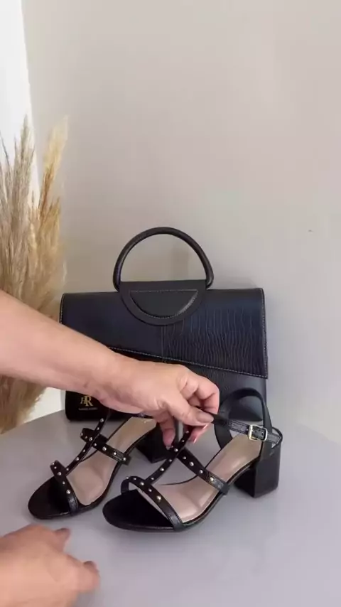 Brilho que encanta ✨ Salto com pedrinha dourada + bolsa de couro com 2 anos de garantia e ferragem banhada a ouro. Elegância que você merece! 💎👠👜 #filmepremiado #pacote #2025internationalshortvideocompetition #facavcmesmo