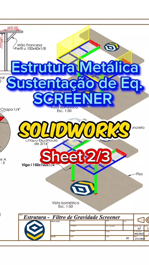 #solidworks Projetos mecânico Estrutura metálica Obras e serviços Conheça a Nossa Biblioteca de Projetos Loogipro: Link: Loogipro.com
