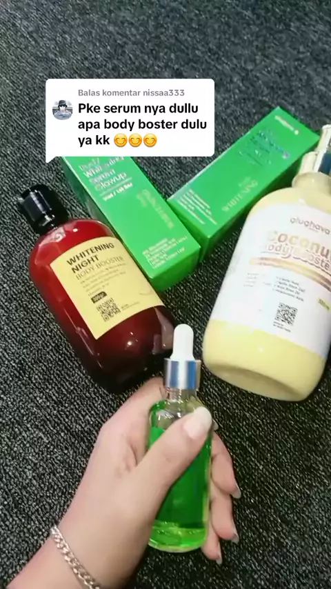 Membalas @nissaa333 Body serum ijo jangan di mix sama body lotion malam ya takut nya iritasi karna persentasenya dah waw banget, tanpa di mix juga dah mantul#pencerahkulit#glughava#bodyserum#serumbadan#cuantanpabatas#nboktshop