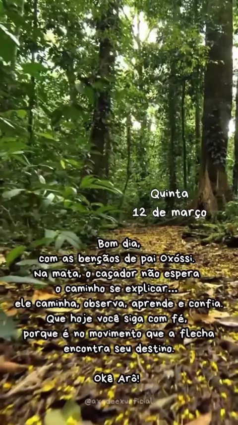 #Repost @axedeexuoficial Nos caminhos de Oxóssi, a gente aprende que nem todo passo na mata é dado com certeza. O caçador não espera conhecer cada trilha para sair em busca do alimento. Ele caminha mesmo sem ver tudo, porque confia na escuta do próprio coração e na sabedoria que o caminho vai revelando. Oxóssi ensina que a direção não nasce da parada, nasce do movimento. É andando pela mata que o caçador percebe o som das folhas, sente o cheiro da terra e encontra aquilo que procura.