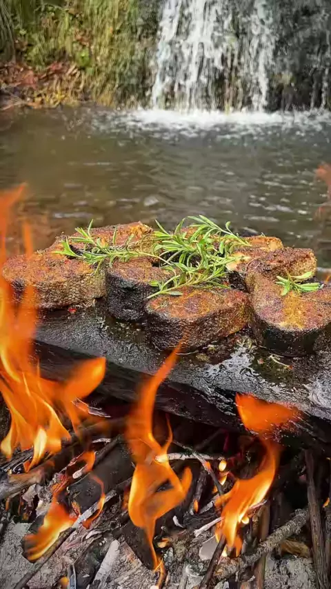 Slamon norueguês maravilhoso na pedra na natureza # asmrcooking # outdoorcooking # receita # leon # naturecooking # cookinger # camping # food # asmrvideo # slamon