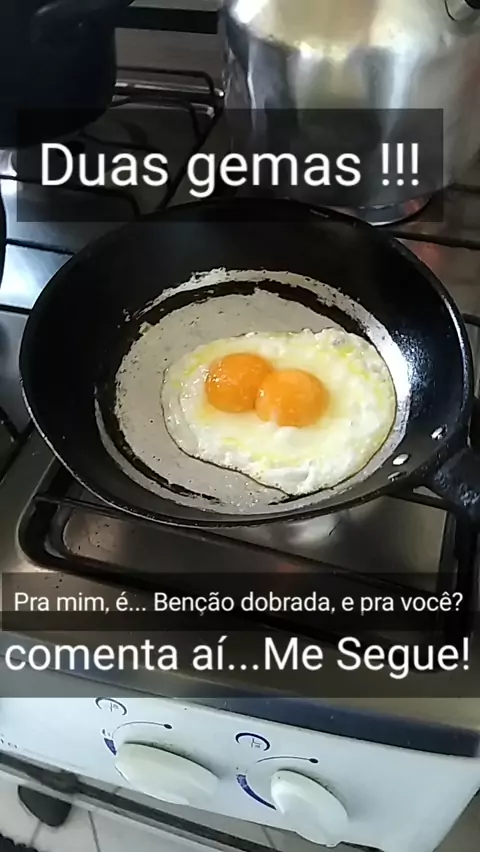 nesse exato instante, +/- 11:15, fui fritar um ovo pra comer com pão 🍞, e olha i que tinha...duas gemas.