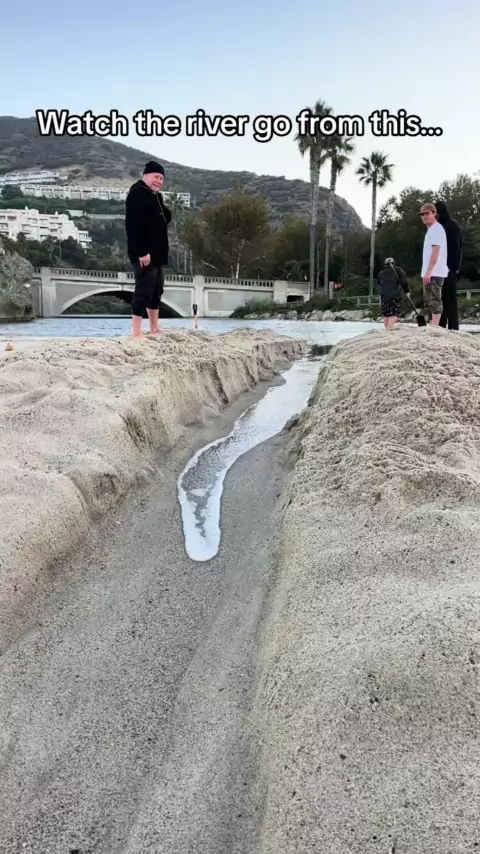 Esta praia em Orange County tem um rio que flui para o oceano. Assista-o começar como um pequeno gotejamento e terminar em uma enorme corredeira onde os surfistas tentam surfar as ondas! # # # waves # surf # surf # ocean # beach # bigwaves # riversurfing # river # riverwave # surftok