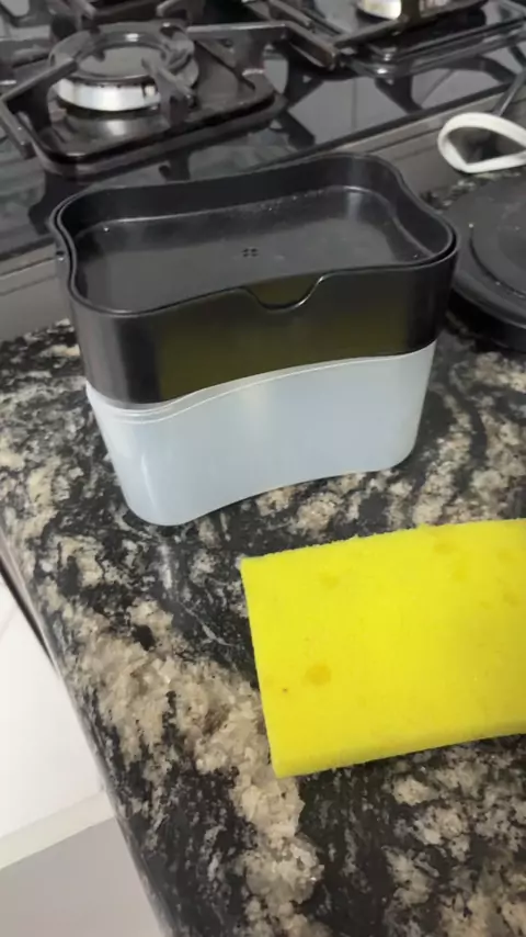 Dispenser Sabão 2x1 Detergente e Suporte Porta Bucha Esponja Prático e