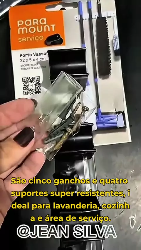 Adeus, bagunça! Organize sua lavanderia com este suporte incrível! #organizacaodolar #lavanderiaorganizada #suportepravassoura #casalimpa #praticidade