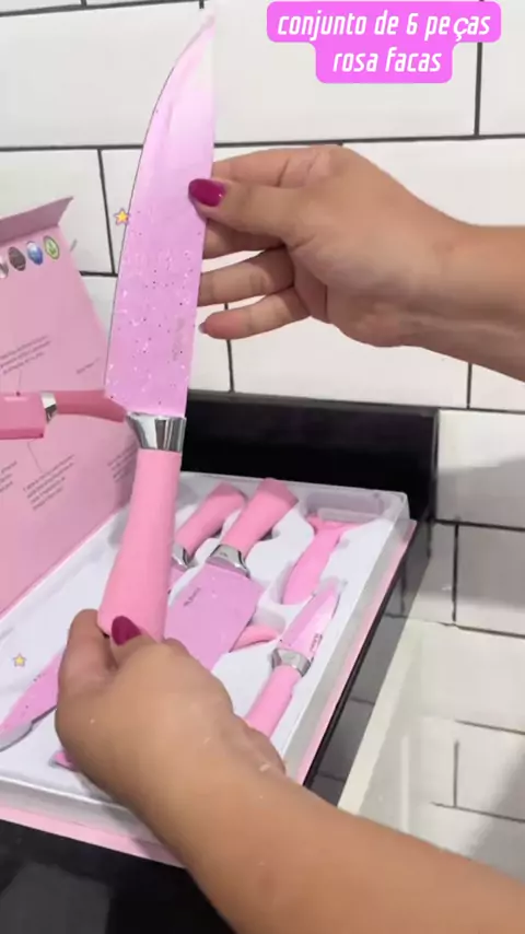 Conjunto de 6 peças facas rosa #facasrosa #conjunto6peçasfacasrosa #6peçasrosa