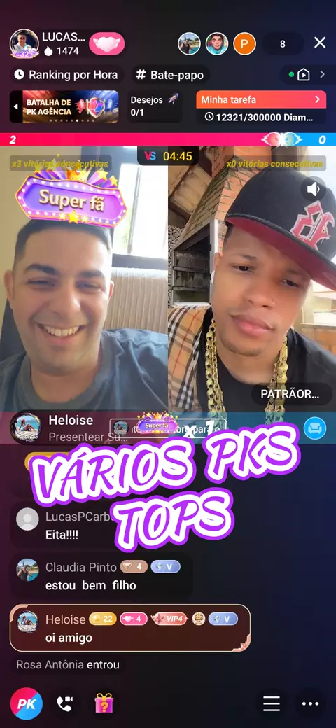 SEQUÊNCIA DE PK EM DUPLA TOP @ESTEPHANO da CARLA SILVA💜(O150000211228179) @LEONINO OFICIAL 🦁🔥(O150001616175216) @☯️mascote dos golpe☯️(O150001703068939) #lives #radio GRATIDÃO @CICERA P, L❤️💚❤️💚(O150000003065411) @Lúcia Alecrim(O150000275653315) @RITA 💋❤️ MARIA DE FARIAS(O150001703489838)