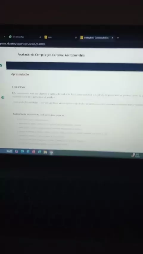 Avaliação Prática Física, Da disciplina Nutrição, Avaliação Antropometria, estudos realizados no laboratório virtual.