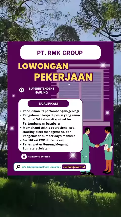 Lowongan Sumatera Selatan Terbaru PT. RMK GROUP #loker #lokerpalembang_terbaru #lokerpalembang #mediainfokarir #lowongankerja