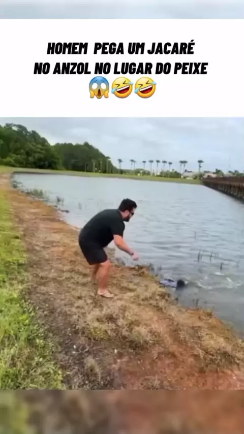 Homem pega um jacaré no anzol no lugar de uma peixe 🀣🀣🀣🀣 #pescaria #variedades #fishing #pescador #viral