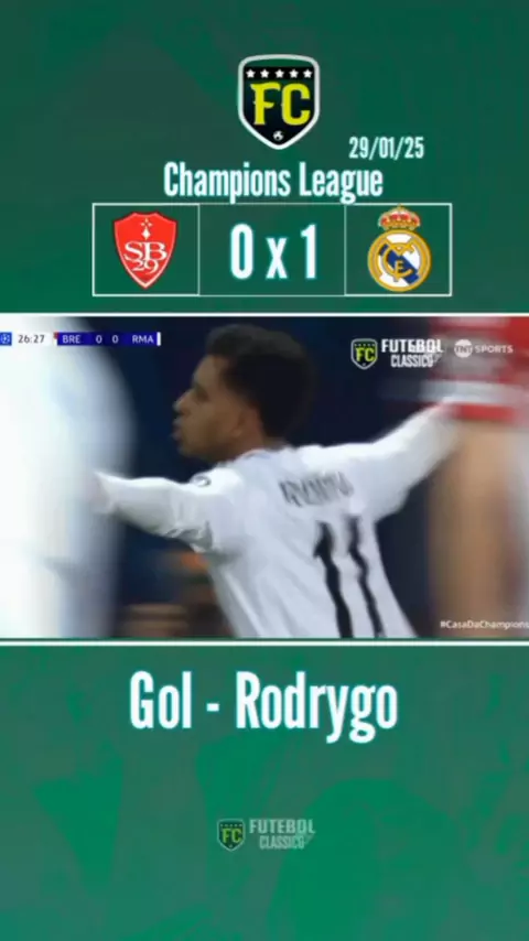 Gol - Rodrygo| Brest 0 x 1 Real Madrid | Champions League 29/01/25 #Futebol #gol #championsleague #realmadrid #Supercopa2025