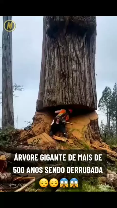 ÁRVORE GIGANTE DE MAIS DE 500 ANOS SENDO DERRUBADA 😔😔😱😱 #fyy #fy #foryou #vídeoviral #kwaibônus