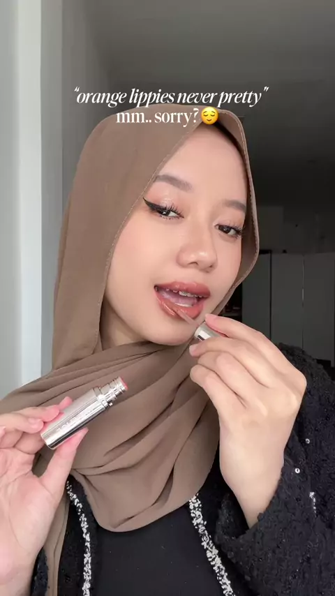 Kelihatannya ngejreng, padahal secakep ini kalau udah dipakai 👀 #orangelips #maangeliptint #lipglaze #glossyliptint #ombrelips