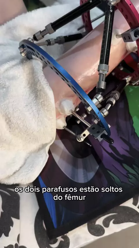 Dois parafusos se soltaram do osso no fixador externo 🦴🦿🩺 #mateuscyborg #hemimelia #femurcurto #alongamentoosseo #tratamento