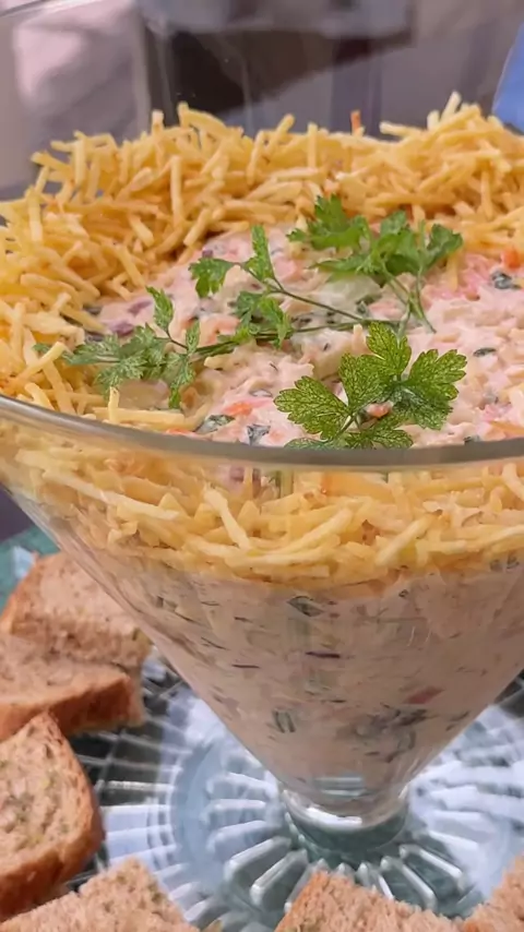 Salpicão ingredientes 500 gramas de frango 1 cenoura 1 tomate sem semente 1/2 pepino 1 cebola picada salsão ou cheiro-verde azeitonas 1 caixinha de creme de leite maionese orégano sal batata palha #salpicão #receitafacil #comidadecasa #receitapratica