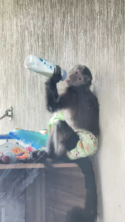 Nenem com seu tete não quer briga com ninguém 😆 #monkey #pet #humor #viral #jackinho